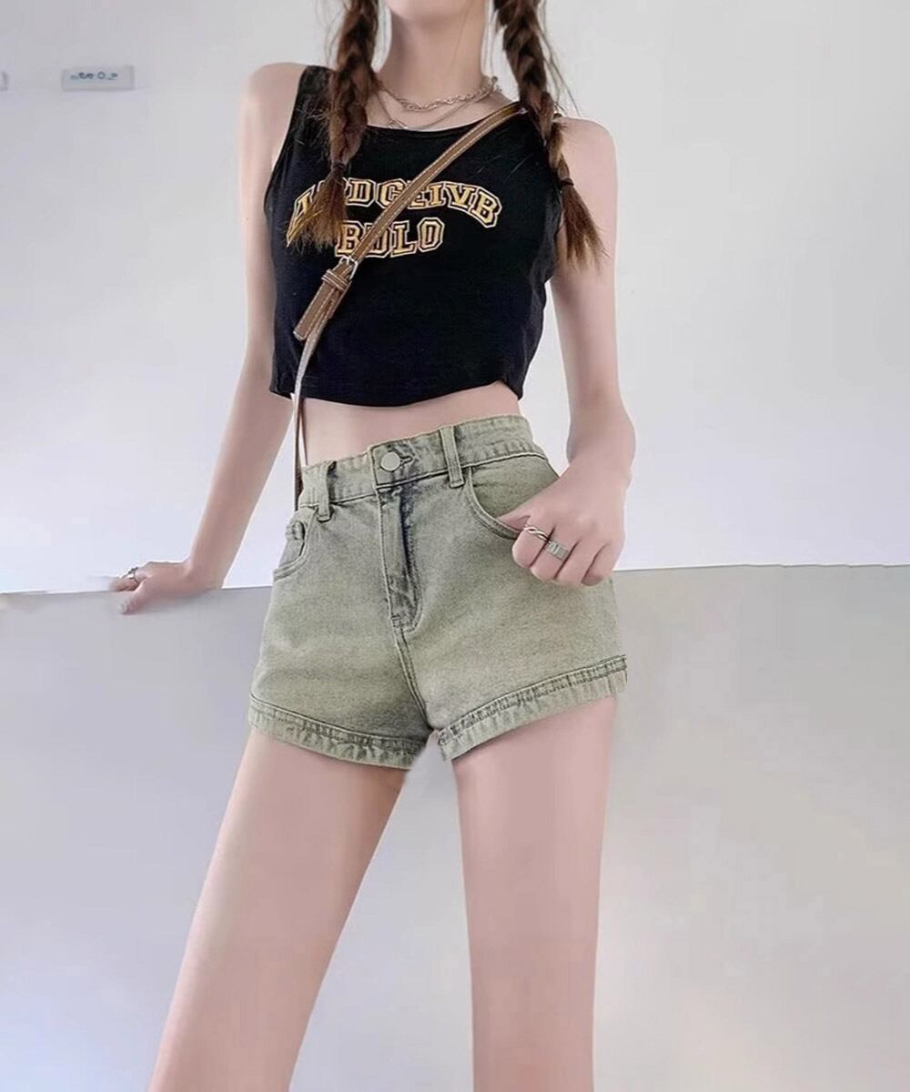 ヴィンテージ風デニムショーパン 美脚脚長ジーパン お洒落アメカジホットパンツ 細見え美尻ジーンズ レトロ短パンオルチャン