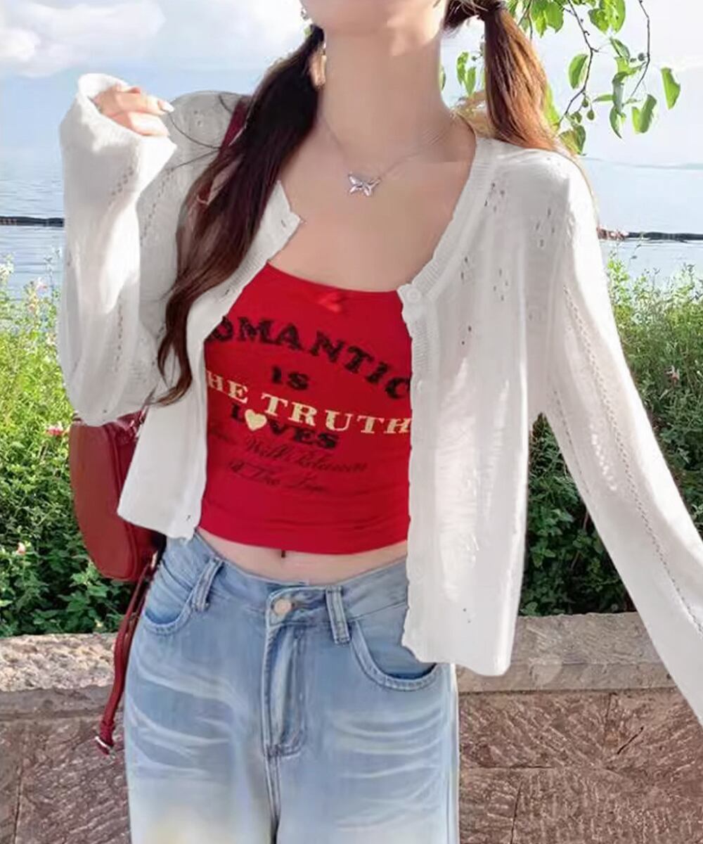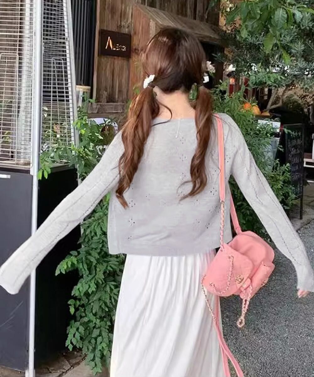透かし編みニットカーディガンクロップド丈