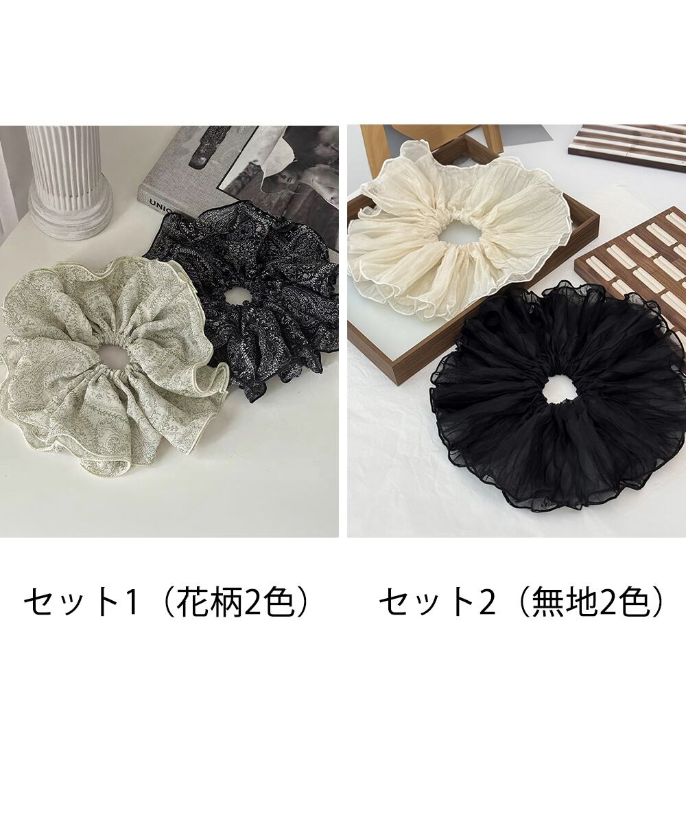 上品なフリルデザインのシュシュは、デイリーからフォーマルまで様々なシーンで活躍。