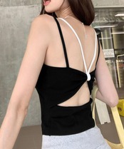 見せインナー重ね着 背中あきブラトップ へそ出しキャミ夏服
