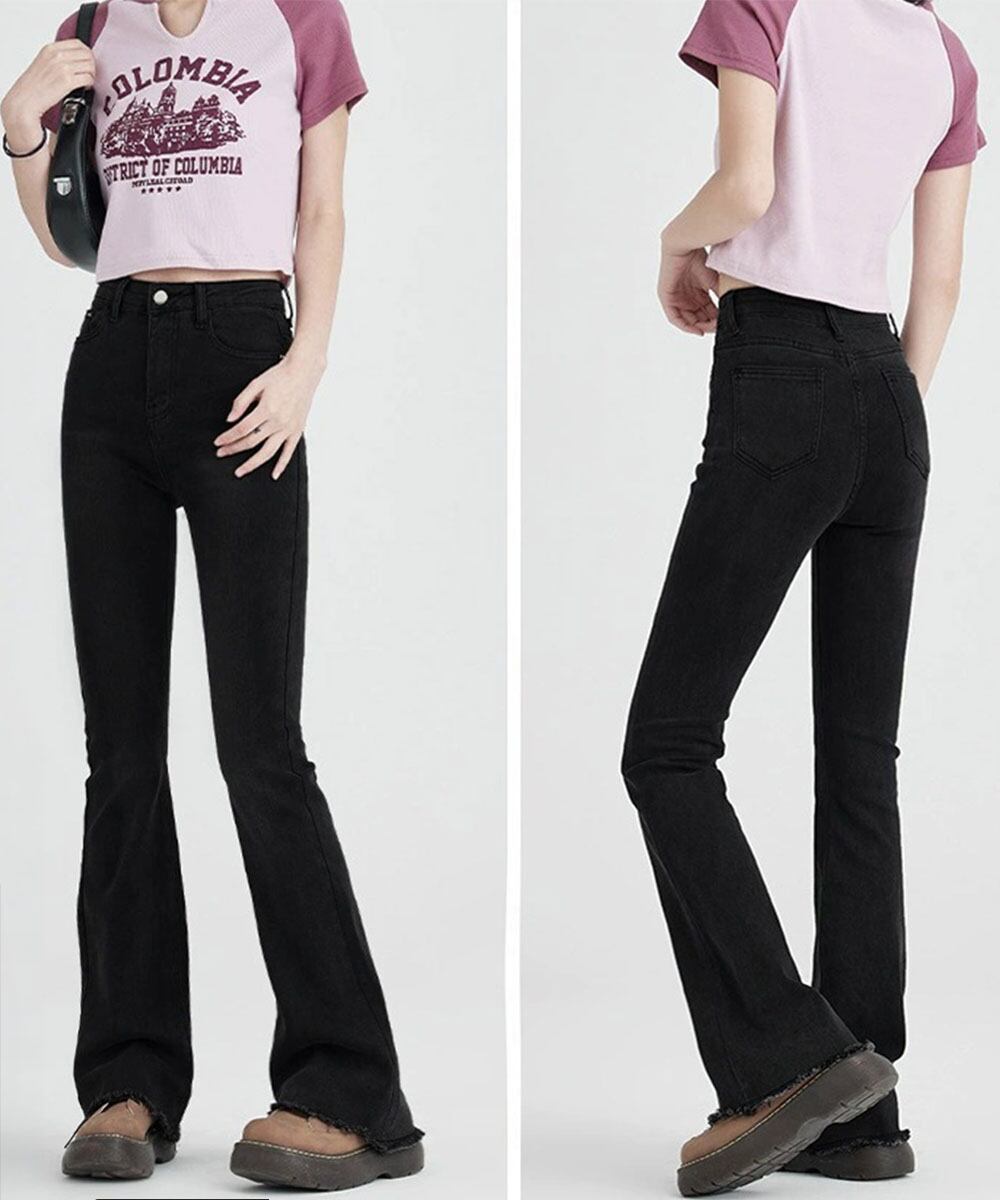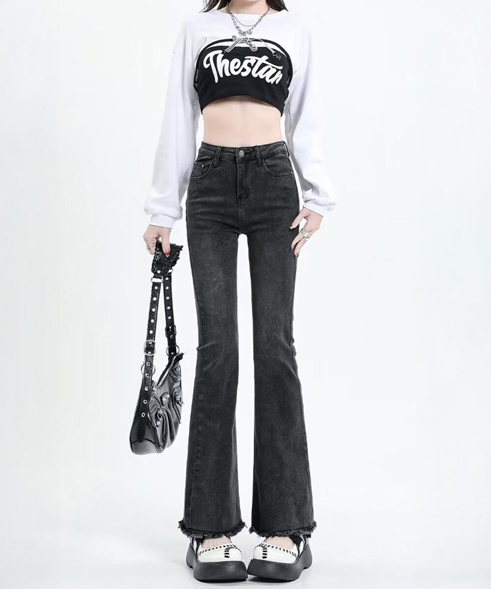 セミフレアデニム春 着やせロングパンツ Y2K韓国コーデ夏