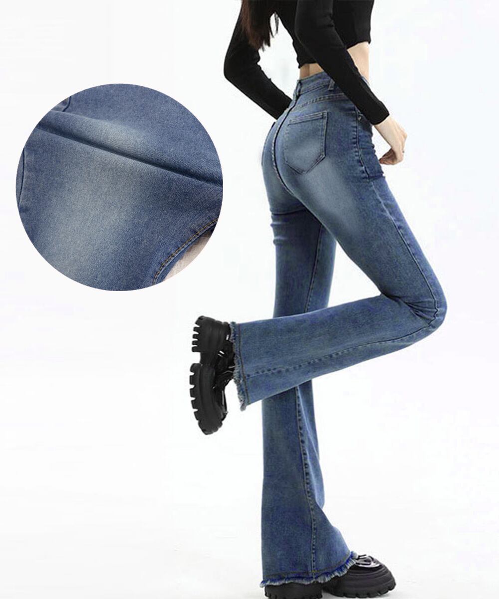 脚長パンツ ハイウエストブーツカットパンツ ジーンズジーパン ストレッチデニム タイトスリムパンツ ヴィンテージ風パンツ