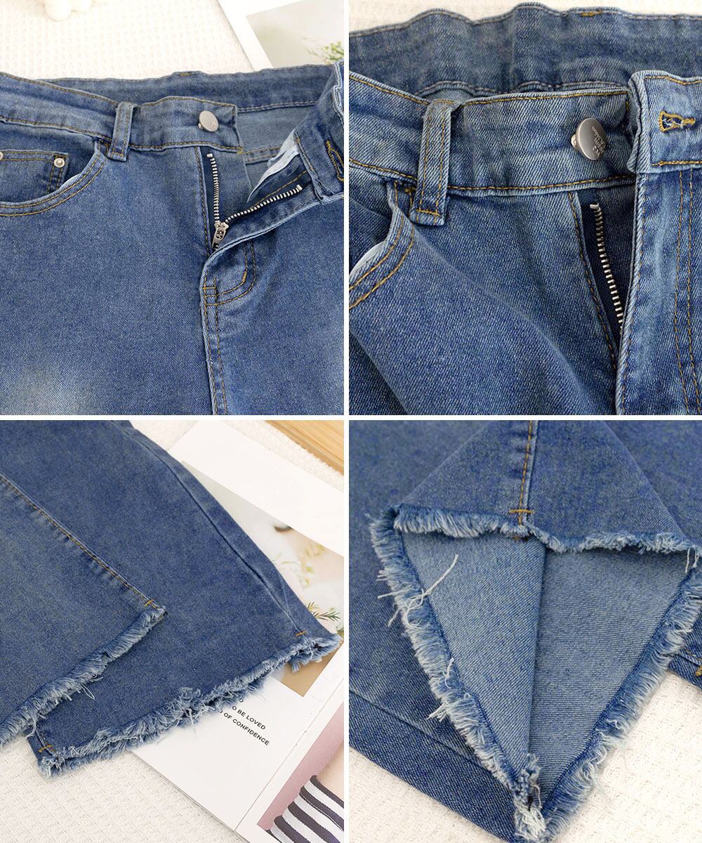 セミフレアデニムパンツ美脚フリンジパンツ