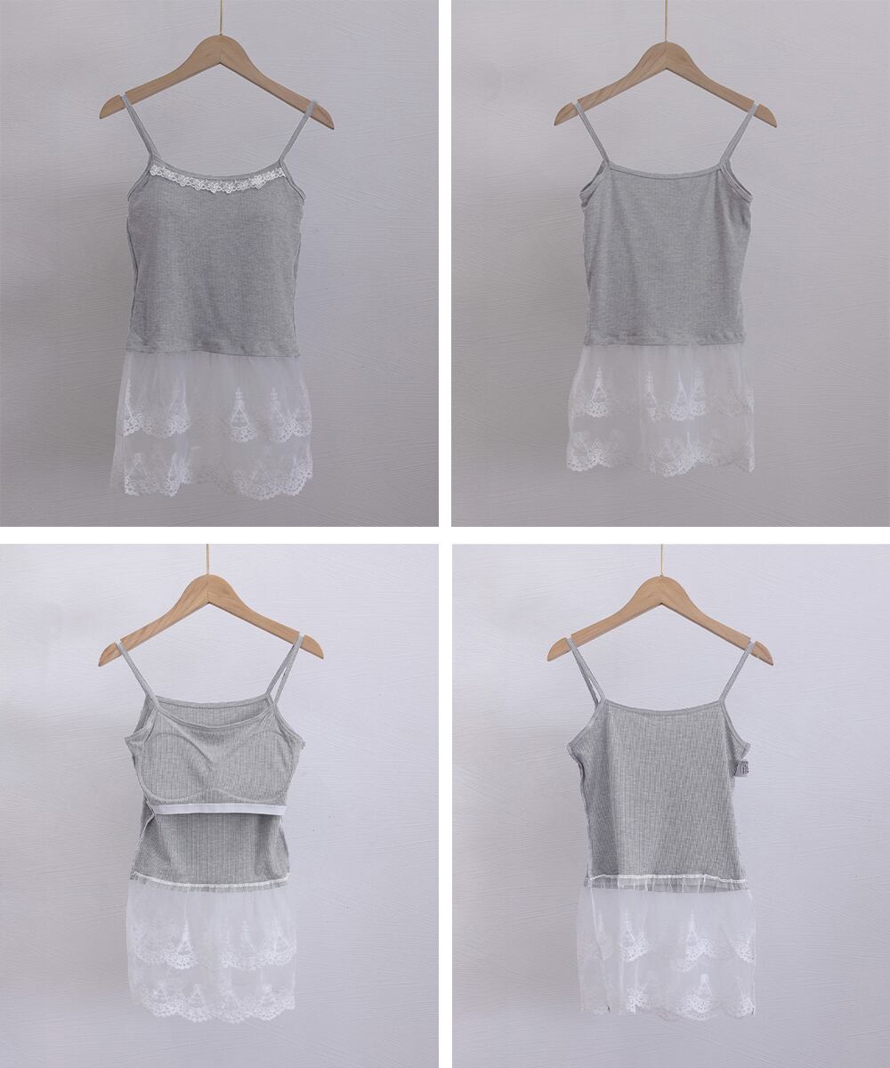フェミニンなレイヤードスタイルが楽しめる、裾レース切り替えキャミソール