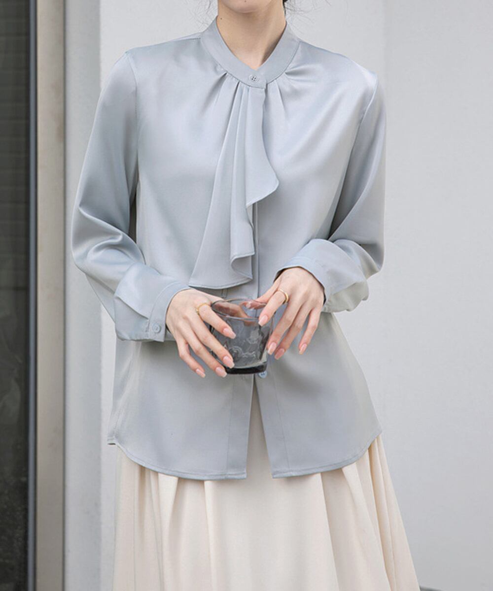 ドレープブラウス オフィスカジュアル 韓国ファッション