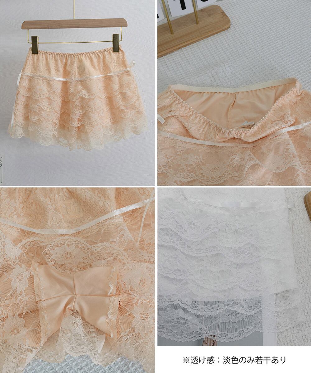透け防止フリルインナーパンツ チラ見せ防止タップパンツ ウエストゴムショートパンツ 総レース 楽ちん部屋着 涼しい寝間着