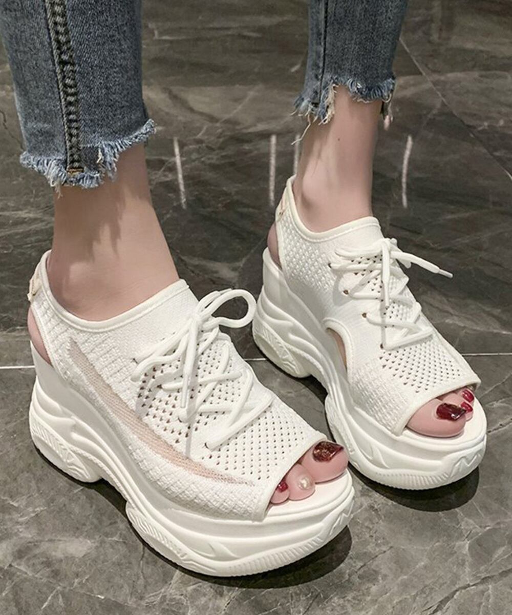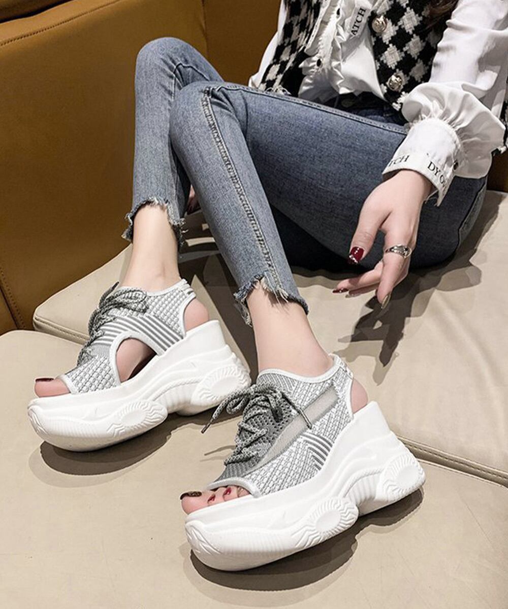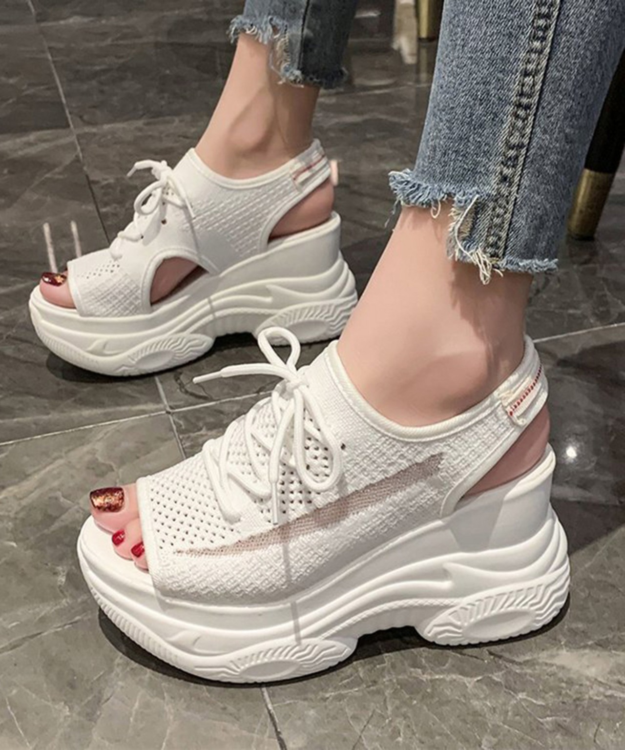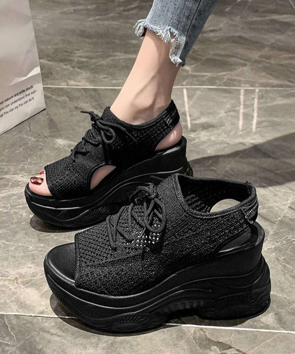 スタイリッシュな厚底メッシュ素材のスポーティオープントゥサンダル。