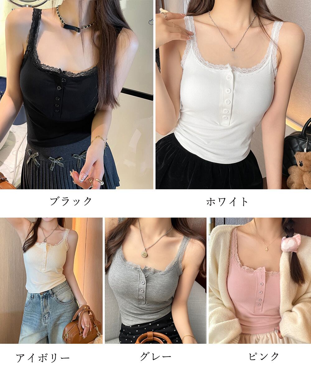 レディースキャミインナー スクエアネック インナートップス ボタン付き シンプル肌着 フェミニンリブブラキャミ セクシー
