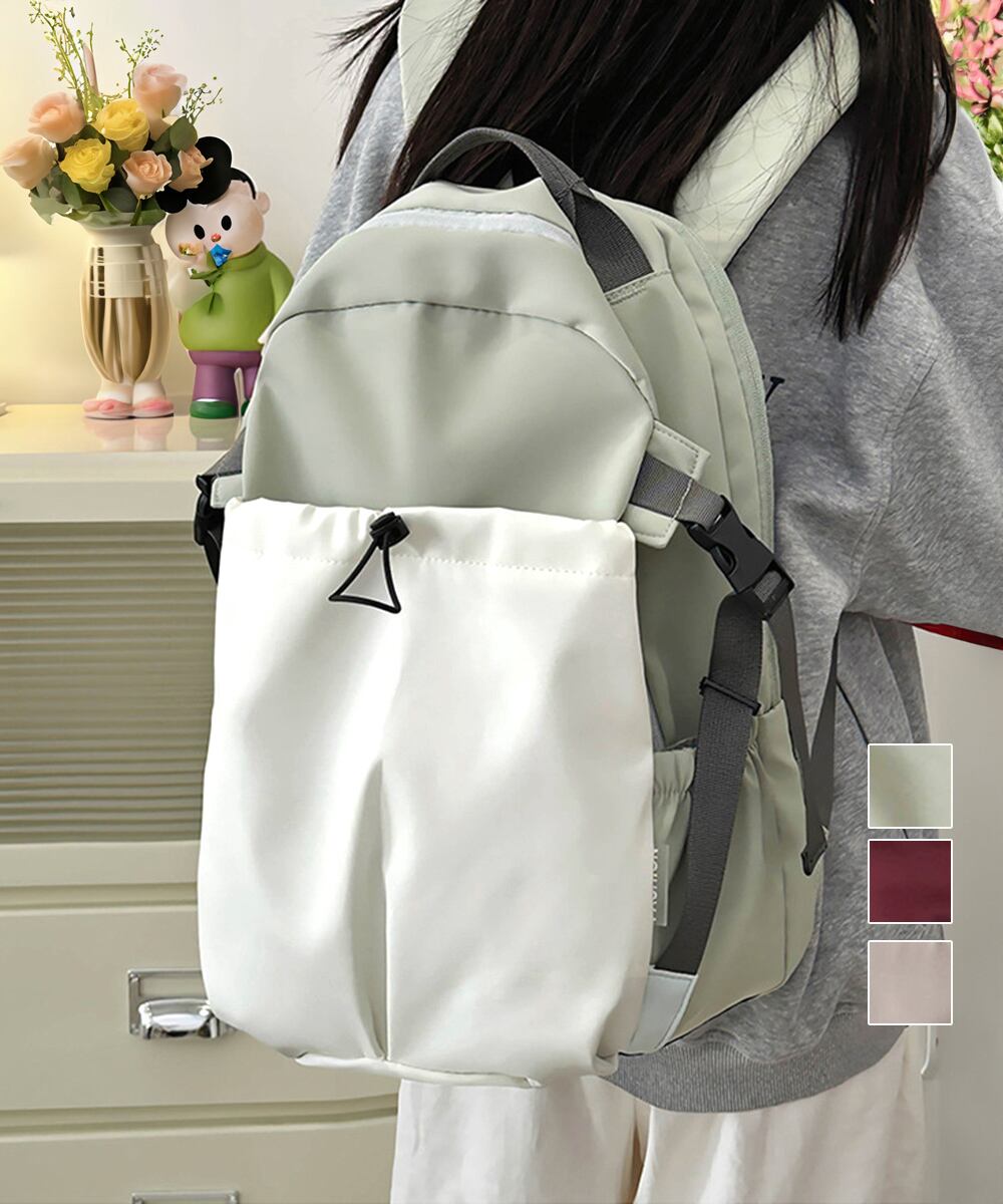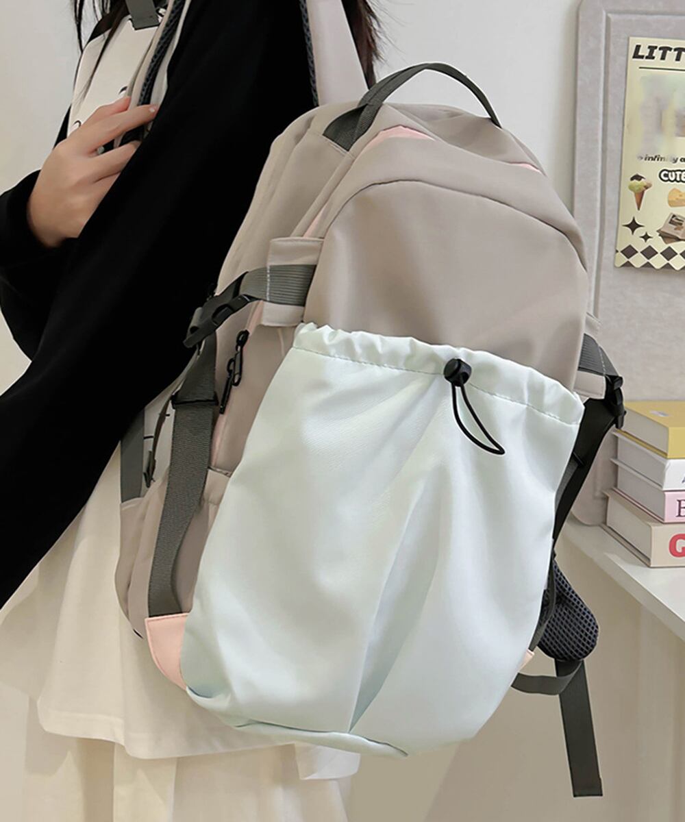 ダブルメインポケット付きの大容量設計で、ノートPCやA4サイズの書類、水筒、ポーチなどの仕分けもラクラク