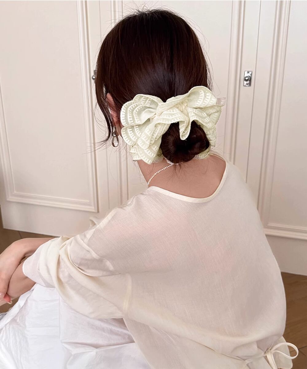 ボリューム感のあるフリルが、ヘアスタイルを優雅に演出。