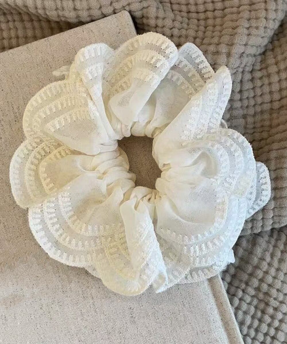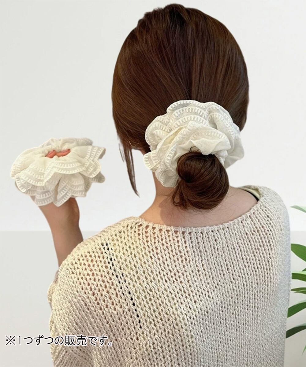 ボリュームレースシュシュ 韓国風ヘアゴム