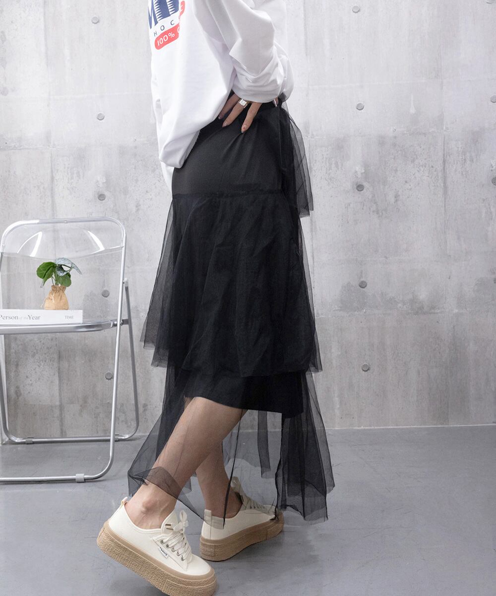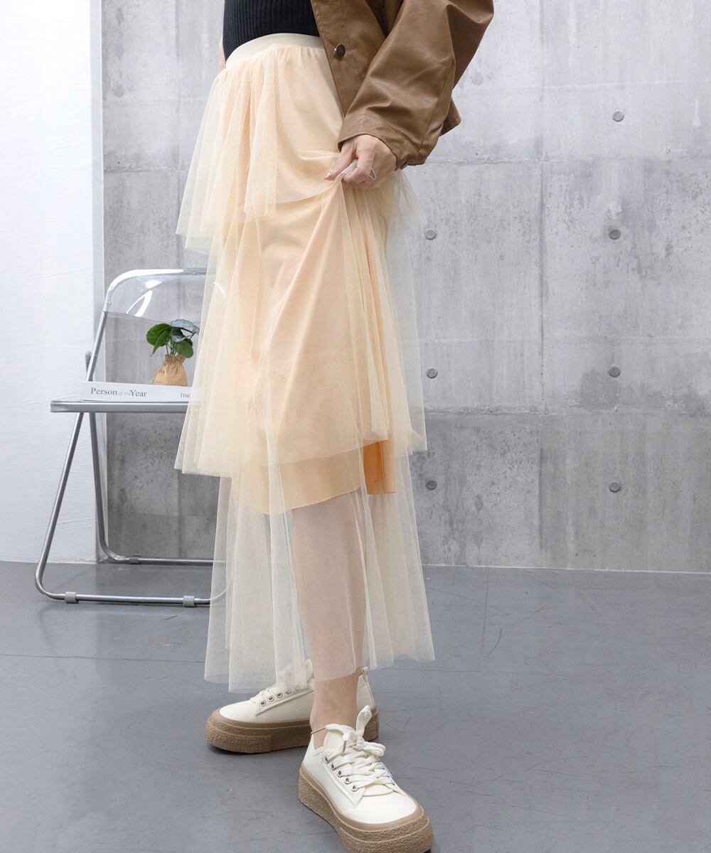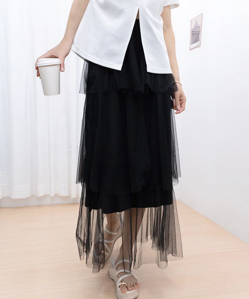 チュールティアードスカート ハイウエスト