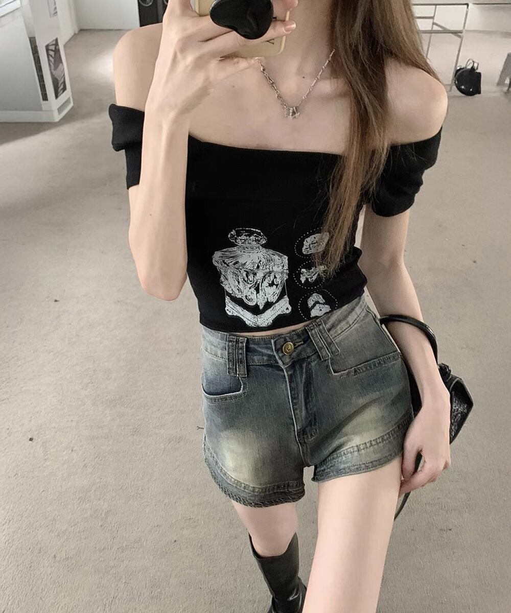 ブリーチデニムショーパン 美脚脚長ジーパン おしゃれ アメカジホットパンツ細見え 美尻ジーンズ レトロ短パン オルチャン