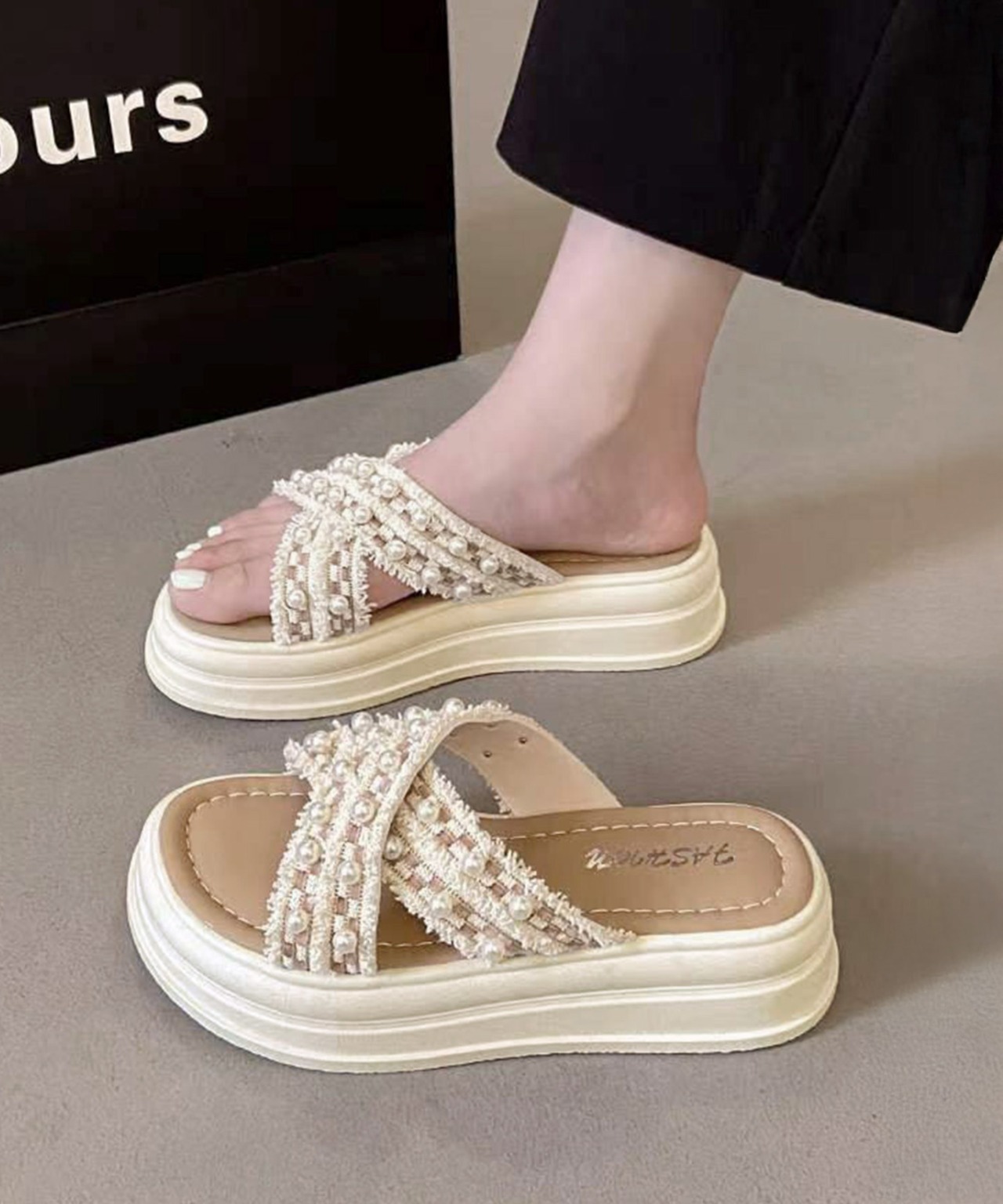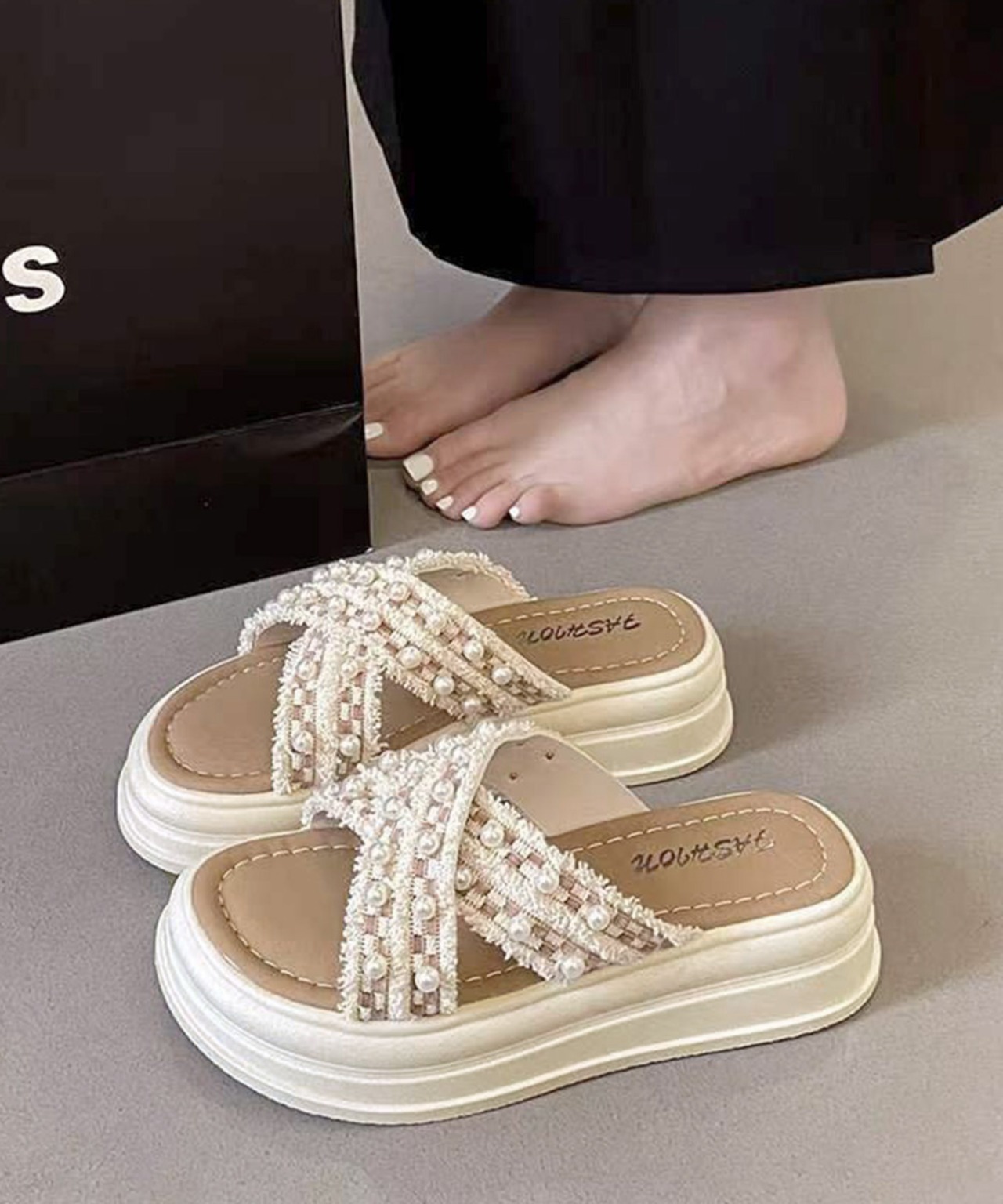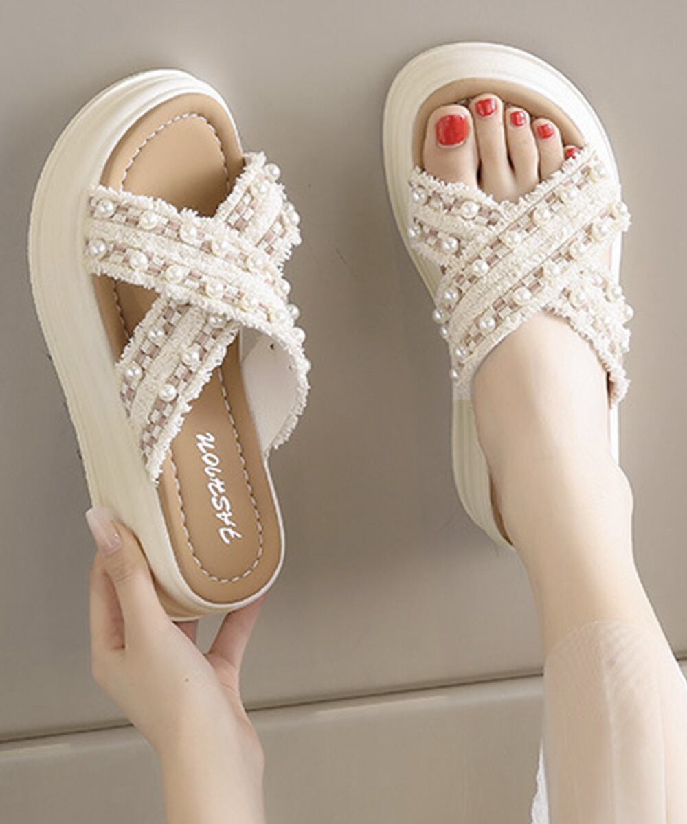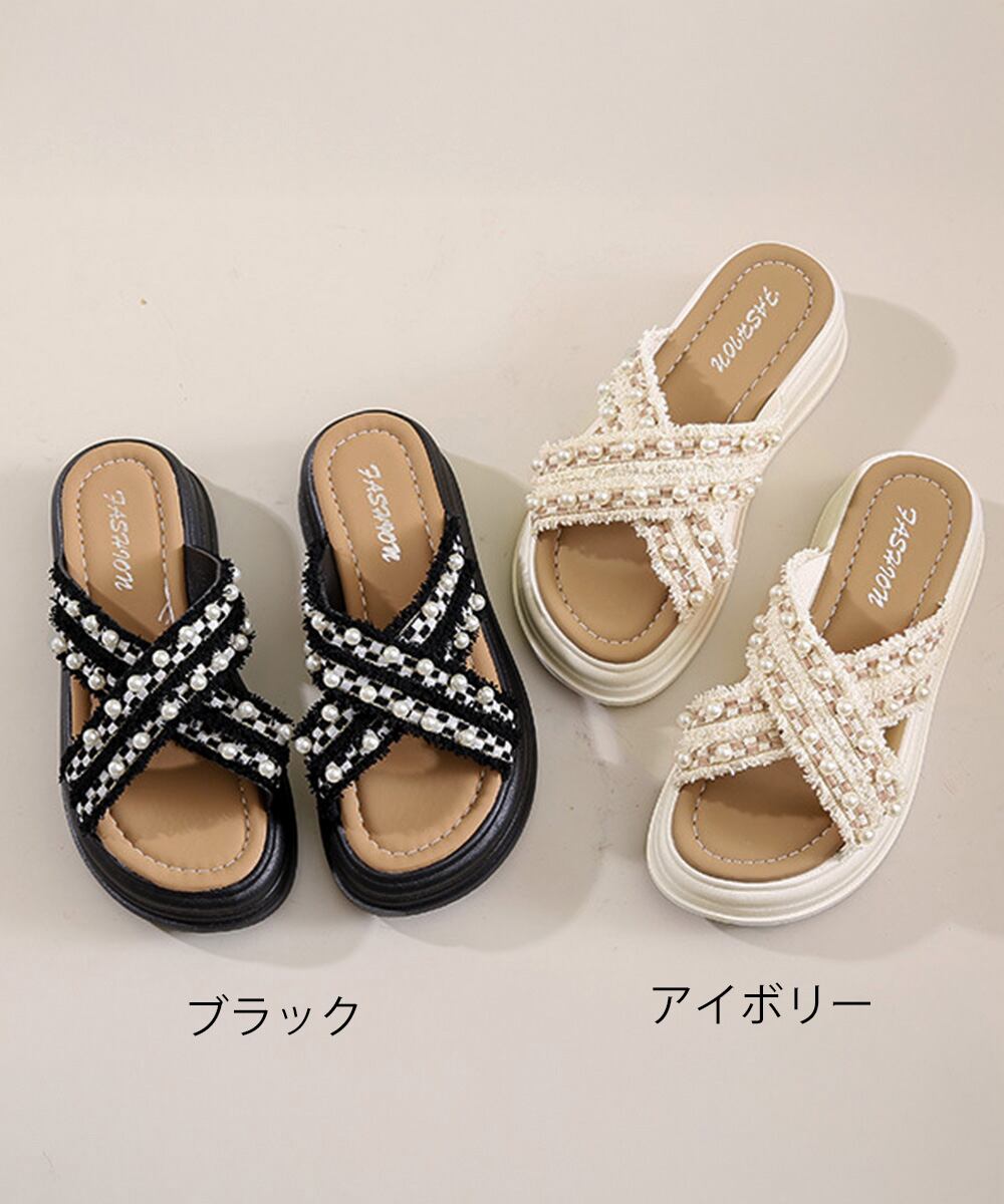 厚底サンダルパール付クロスサンダル韓国風